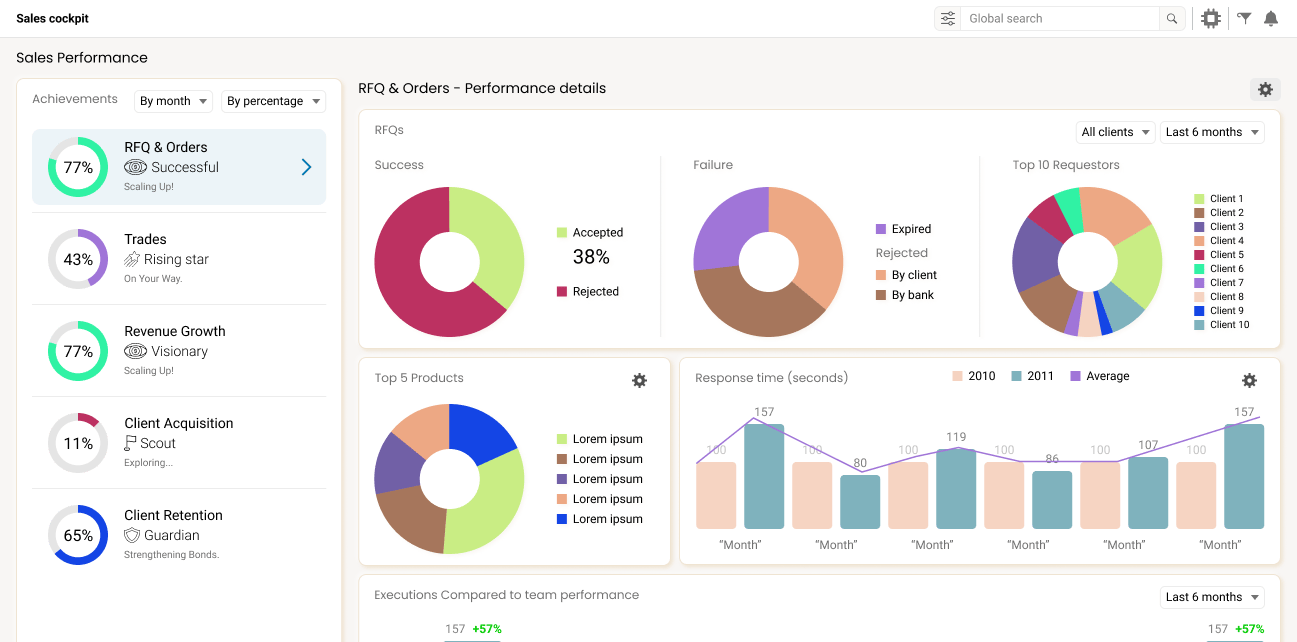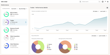It was a colossal challenge to cover all the Sales needs in unique solution. Despite everything we succeeded presenting in priority what a Sales would need to see at the beginning of the day, and even deliver his performance information with a nice touch of gamification.