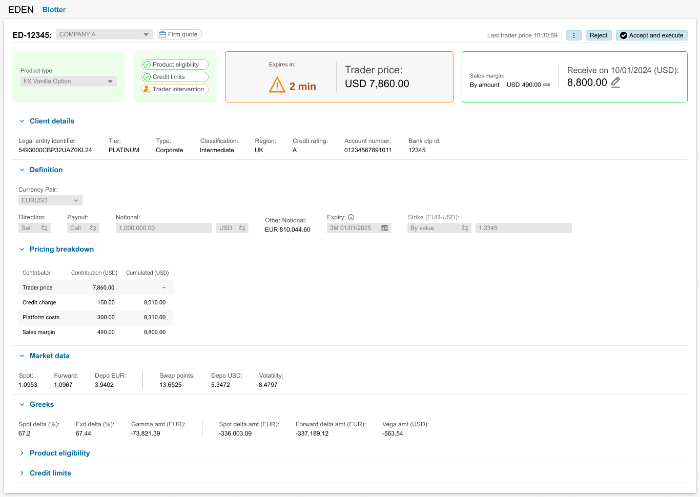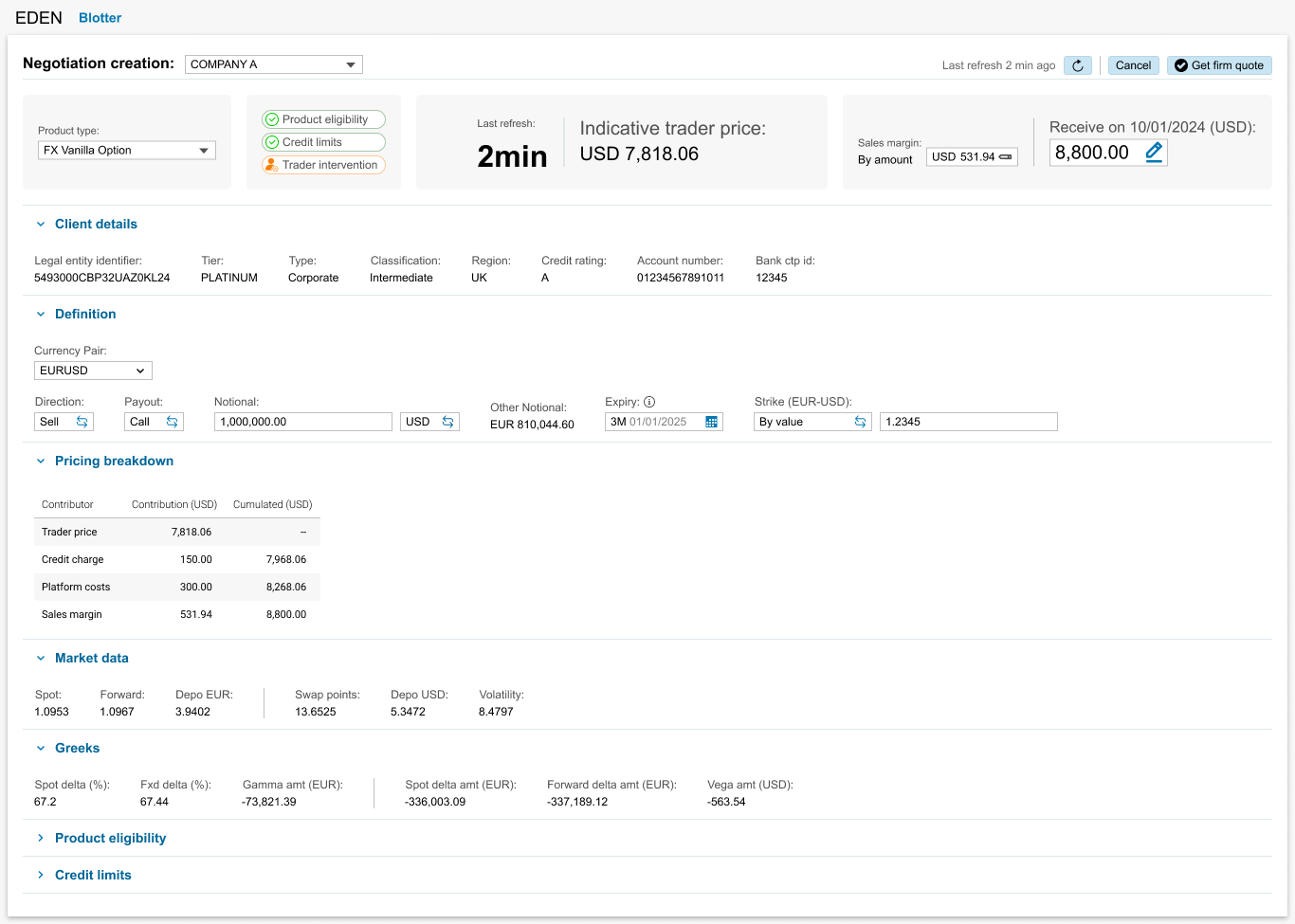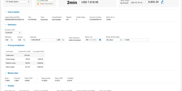 Sales doesn’t have a module in the Murex platform that allows to enter a negotiation on behalf of the client, but only if it’s booked by himself. Clients were forced to develop their own solution for their Sales.